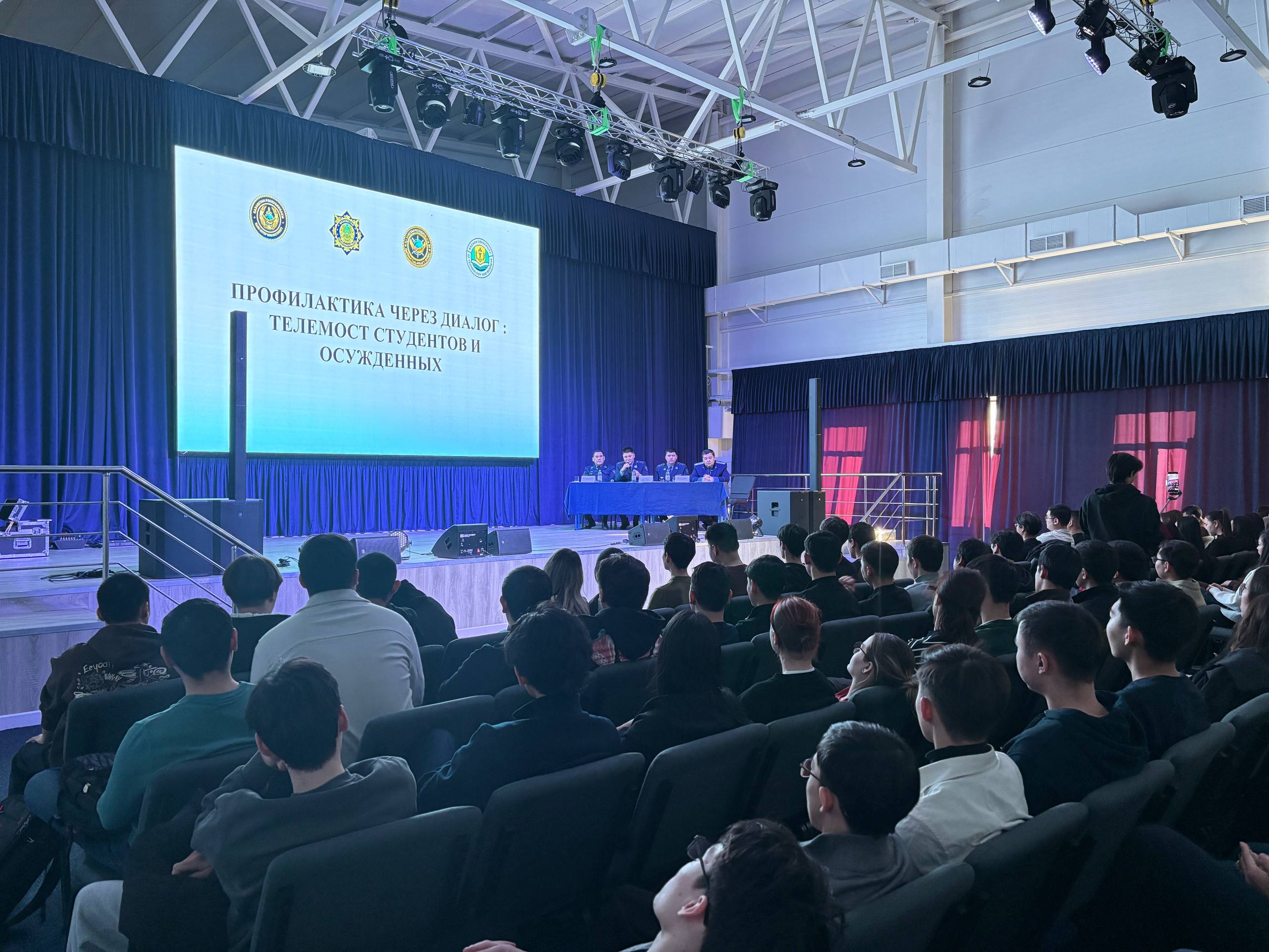 На базе Казахский национальный университет технологий и бизнеса имени К. Кулажанова состоялся телемост между студентами и осуждёнными, посвящённый профилактике мошенничества и наркопреступлений. В режиме онлайн к встрече подключились осуждённые хозяйственного отряда учреждения №64, подведомственного Департамент уголовно-исполнительной системы по городу Астана. Они откровенно рассказали о своих ошибках, последствиях необдуманных решений и ответили на вопросы студентов.