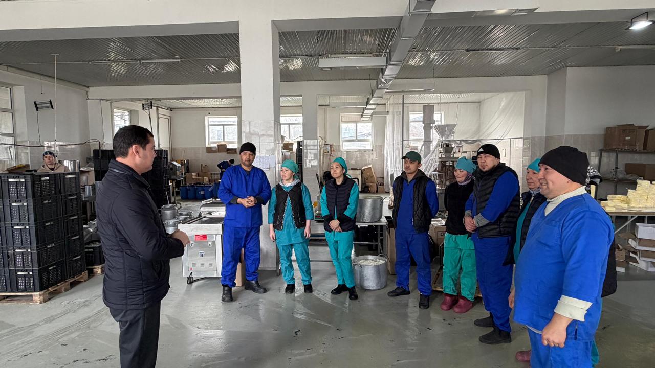 🔹 В ходе проверки государственный инспектор труда Департамента Алдияр Шаниярович организовал встречу с трудовым коллективом сельскохозяйственного производственного кооператива “Майлыкент-сут”, где провел разъяснительную работу по законности трудовых отношений между работодателем и работником.