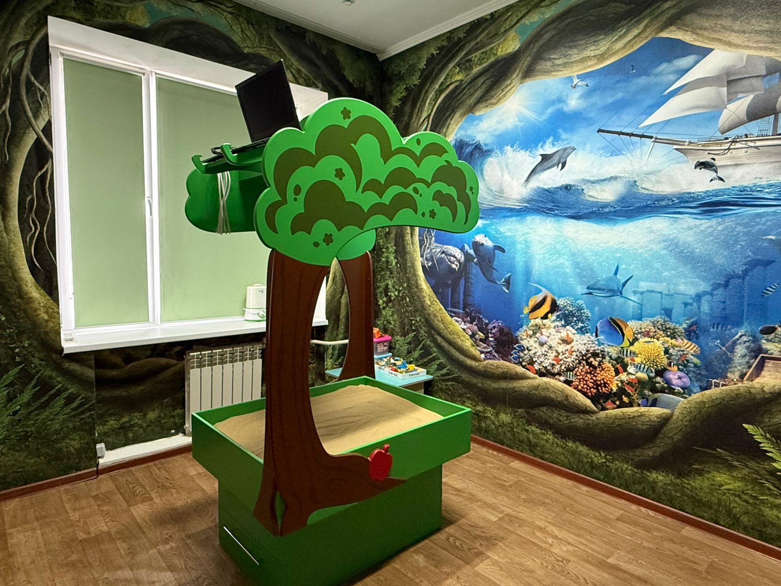 Образовательное пространство ясли-сада оснащено современными кабинетами: «Робототехника», «Интерактивный скалодром», «Интерактивная песочница», «STEM лаборотория», устройствами «Умный пол», «Умное зеркало» и др.