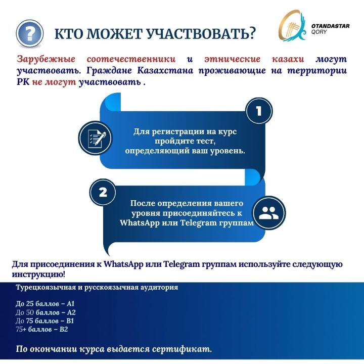 НАО «Фонд Отандастар» продолжает популяризировать казахский язык за рубежом и с марта 2026 года запускает новый поток бесплатных онлайн-курсов!