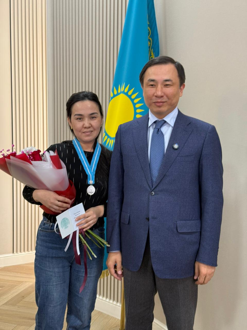 В районе состоялась торжественная церемония вручения государственных наград — подвесок «Алтын алқа» и «Күміс алқа».