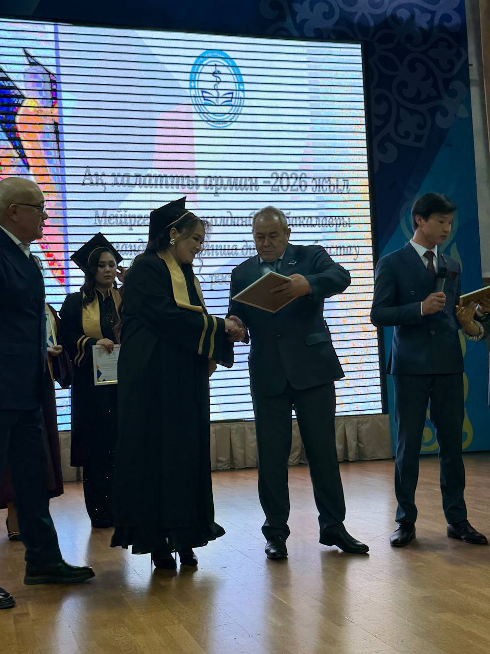 В торжественной церемонии вручения дипломов студентам, завершившим обучение по специальности «Прикладной бакалавр сестринского дела» Талдыкорганского высшего медицинского колледжа, приняли участие председатель Талдыкорганского городского маслихата Темірболат Ахажан и депутат избирательного округа №18, директор колледжа Серик Жансенгиров.