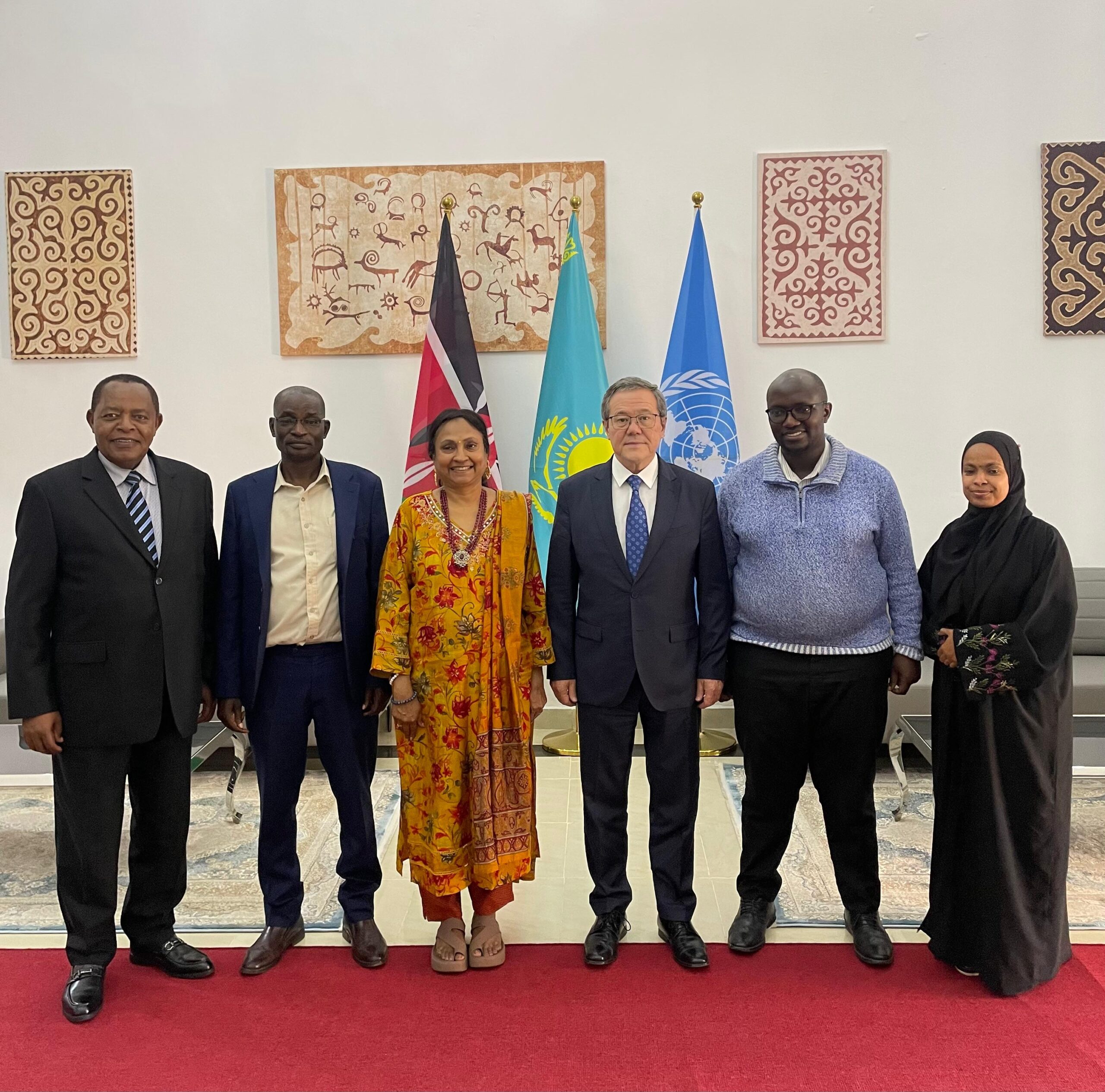 Найроби, 20 февраля 2026 года – Посол Казахстана в Кении, Постоянный представитель РК при Отделении ООН в Найроби Барлыбай Садыков провел встречу с Исполнительным директором Межрелигиозного совета Кении (IRCK) Лайнусом Нтигаи, членом руководства организации епископом Джоном Варари и Председателем Индуистского совета Кении Суджата Котамраджу.
