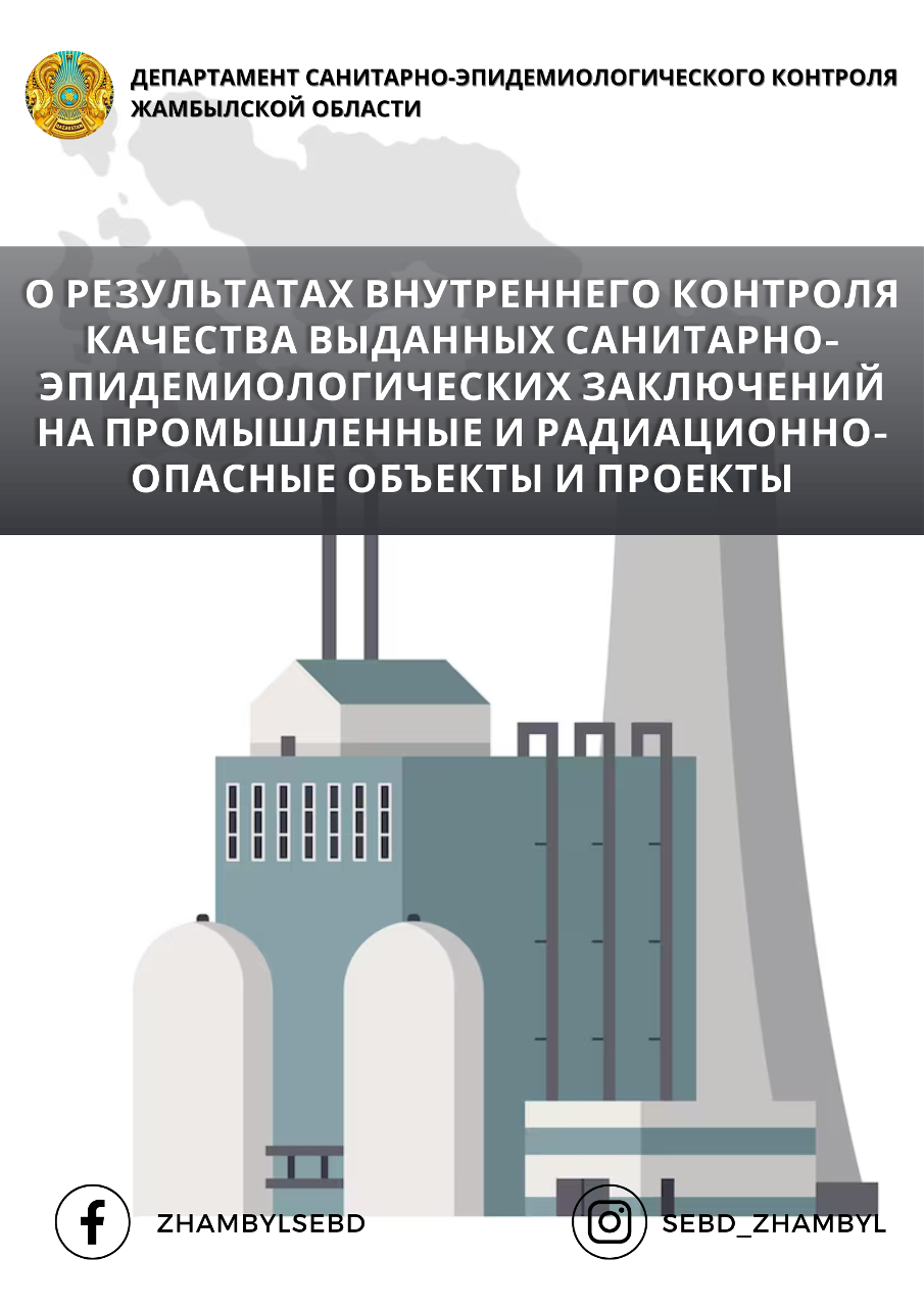 Работа по проведению внутреннего контроля качества выданных санитарно-эпидемиологических заключений на промышленные и радиационно-опасные объекты и проекты продолжается.