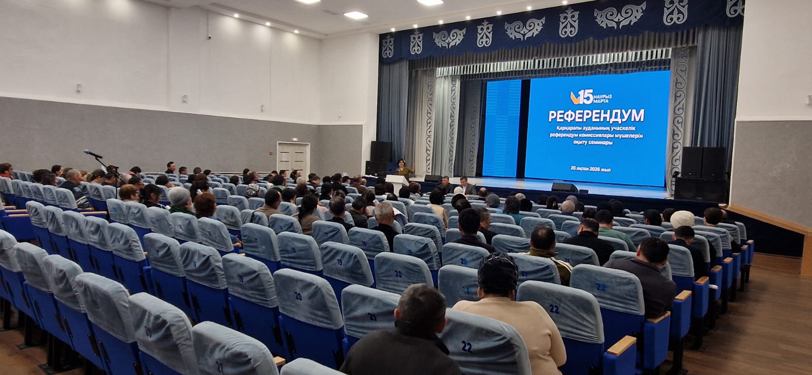 В период подготовки и проведения республиканского референдума, назначенного на 15 марта 2026 года, территориальной комиссией референдума Каркаралинского района 20 февраля 2026 года проведён обучающий-семинар для членов участковых комиссий.