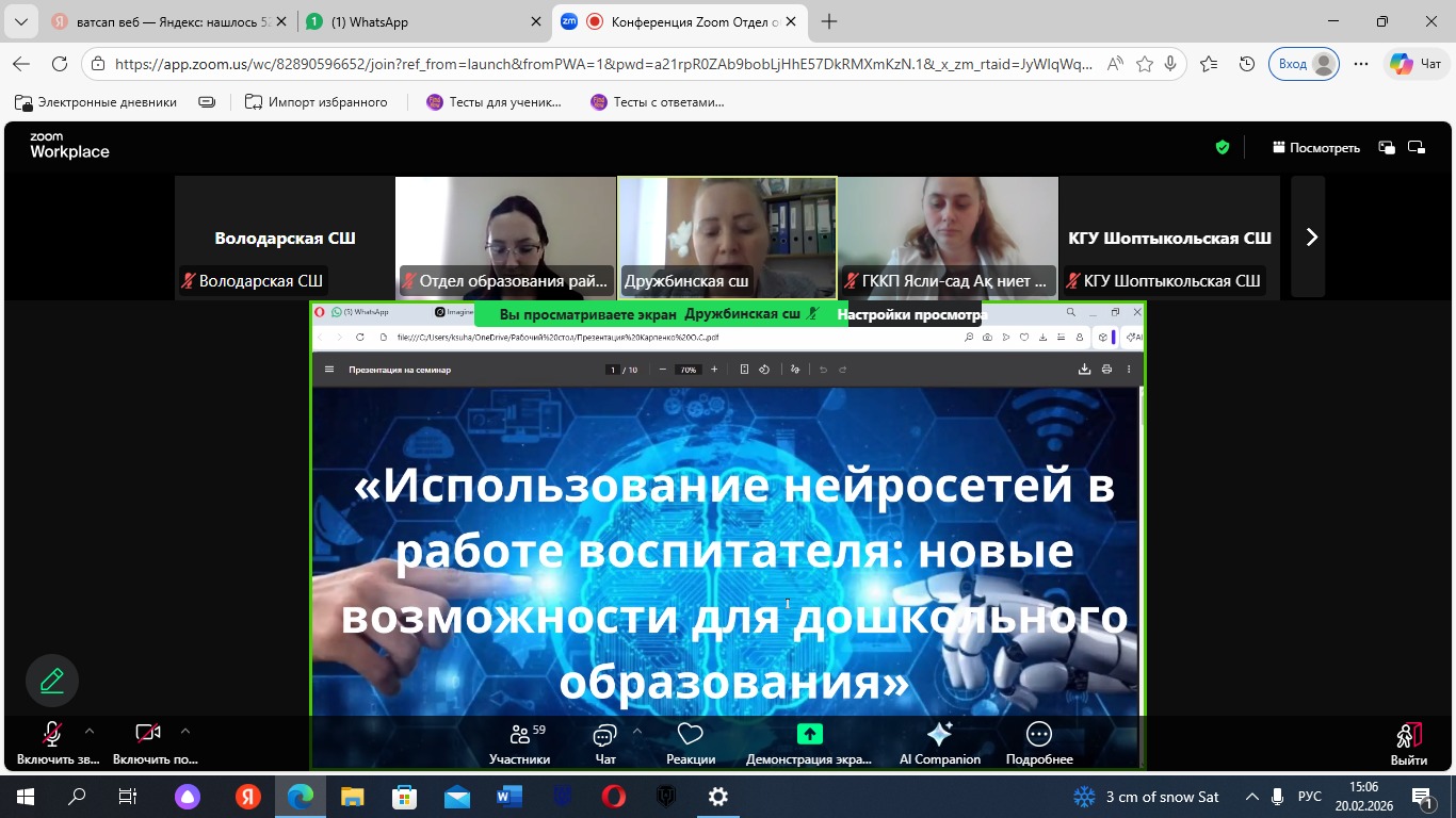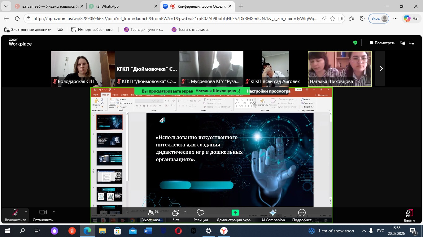 20 февраля 2026 года состоялся районный семинар для педагогов дошкольных организаций на тему «Внедрение цифровых технологий и элементов искусственного интеллекта в дошкольное образование в условиях обновлённых версий образовательных программ.