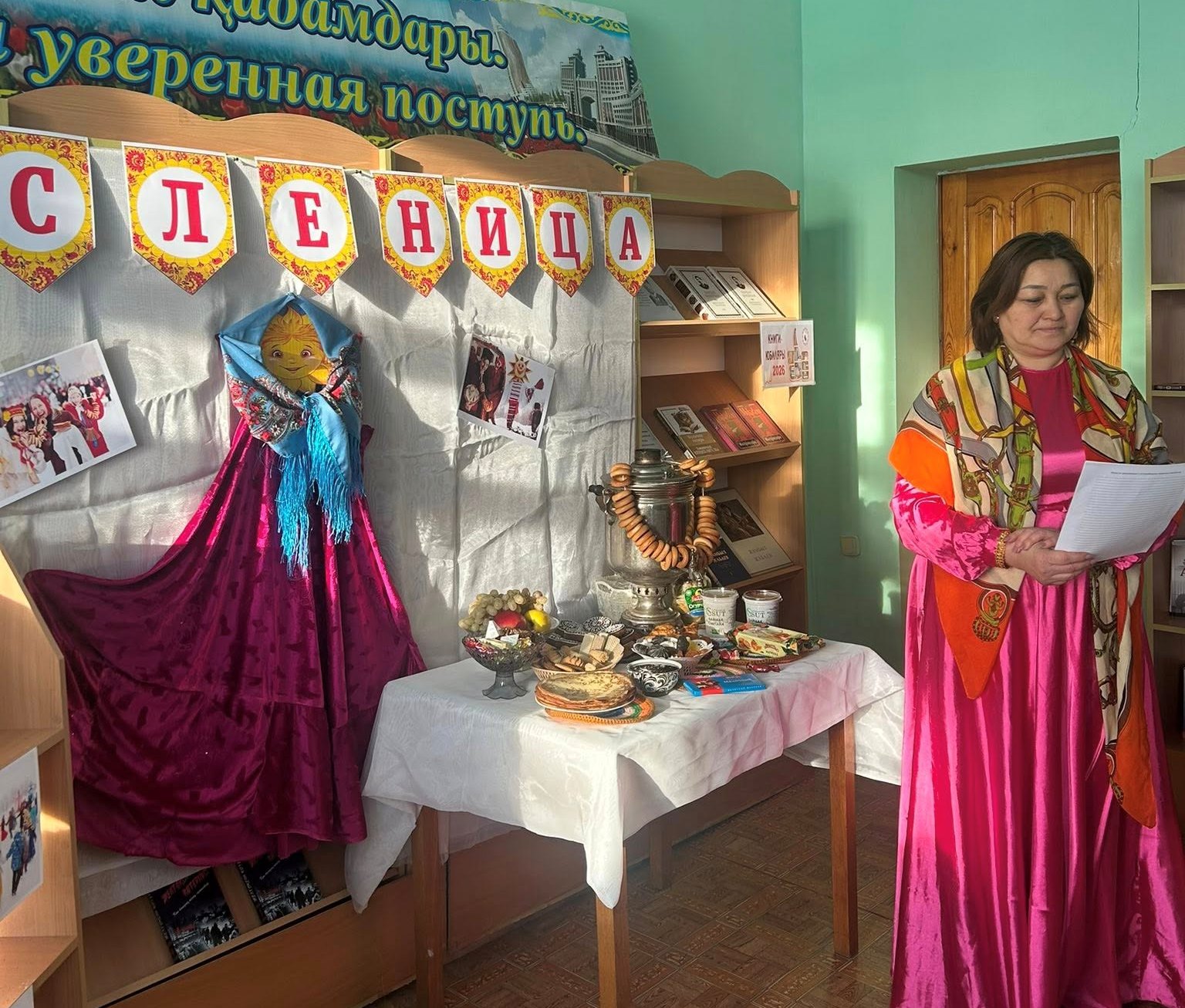 В Сырымбетской сельской библиотеки состоялось праздничное мероприятие, посвящённое Масленице, с участием взрослых читателей.