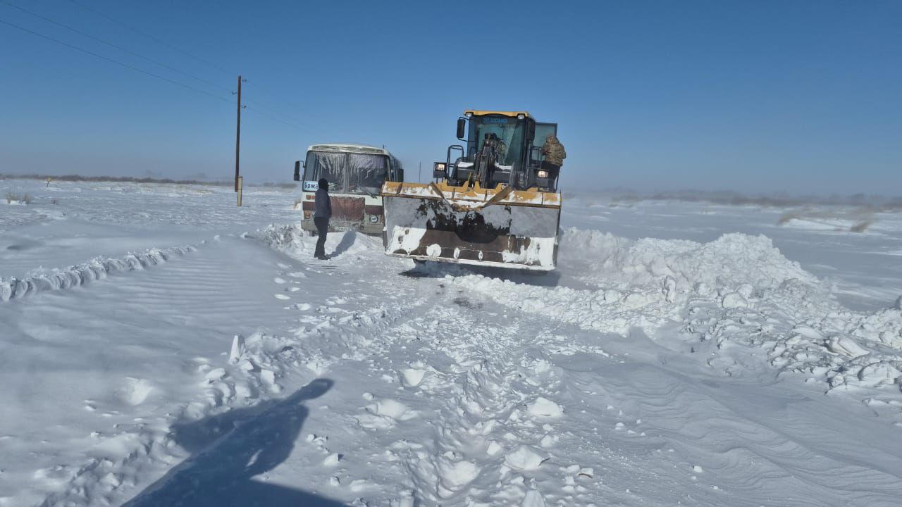 В Зайсанском районе на межрайонной автодороге в направлении села Дайыр – Жамбал автобус марки ПАЗ из-за сильной метели около 09:00 оказался в снежном заносе.