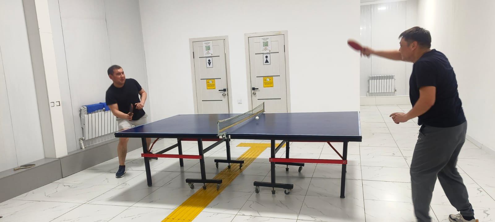 В спортивном комплексе Жанаталап в вечернее время проходят тренировки по настольному теннису. Жители села активно посещают занятия, проводя свободное время с пользой для здоровья.