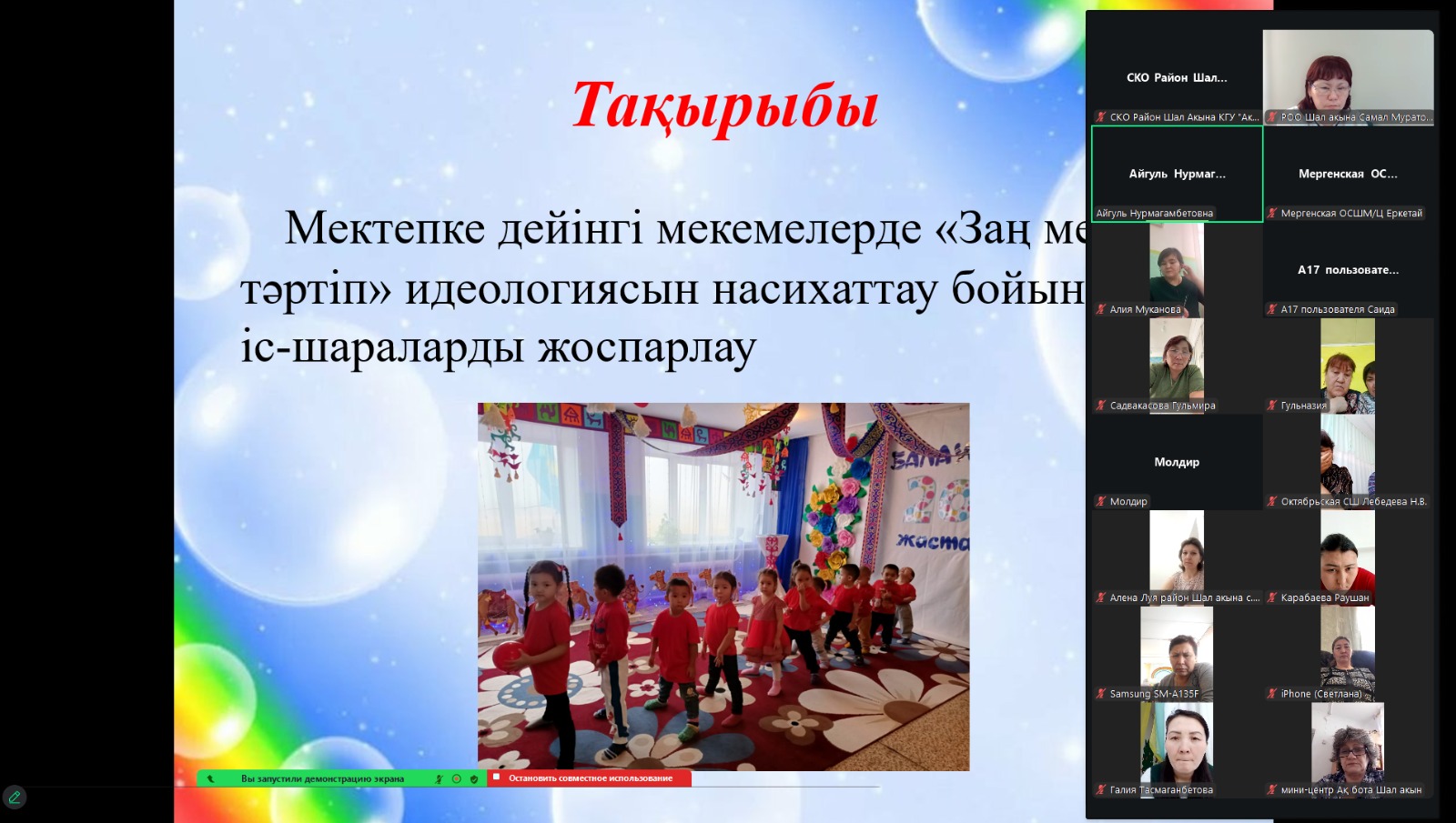 20 февраля 2026 года в рамках реализации плана мероприятий на 2026 год по продвижению идеологии «Закон и Порядок» среди воспитателей дошкольных организаций и предшкольных классов в онлайн-формате состоялся информационный час на тему «Педагог и Закон». В мероприятии приняли участие члены региональной мобильной группы.