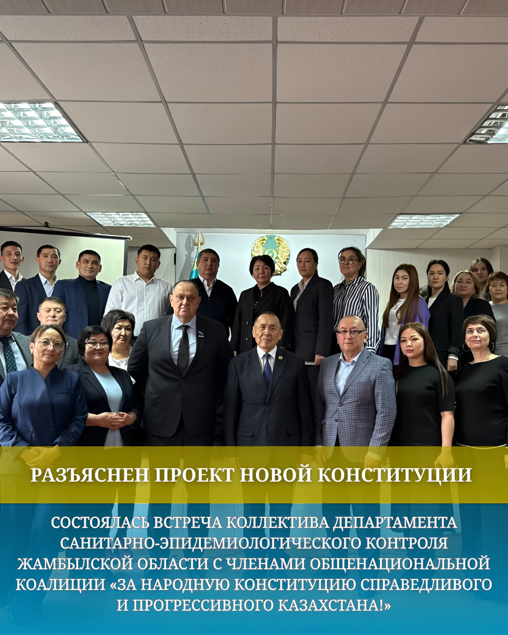 23 февраля 2026 года состоялась встреча коллектива Департамента санитарно-эпидемиологического контроля Жамбылской области с членами общенациональной коалиции «За Народную Конституцию Справедливого и Прогрессивного Казахстана!».