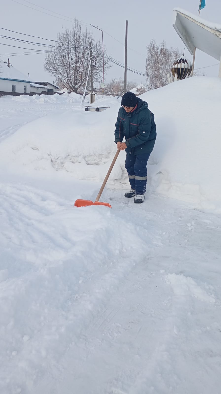 В рамках акции «Таза Казахстан» в поселке Октябрьский продолжаются работы по очистке территории от снега.