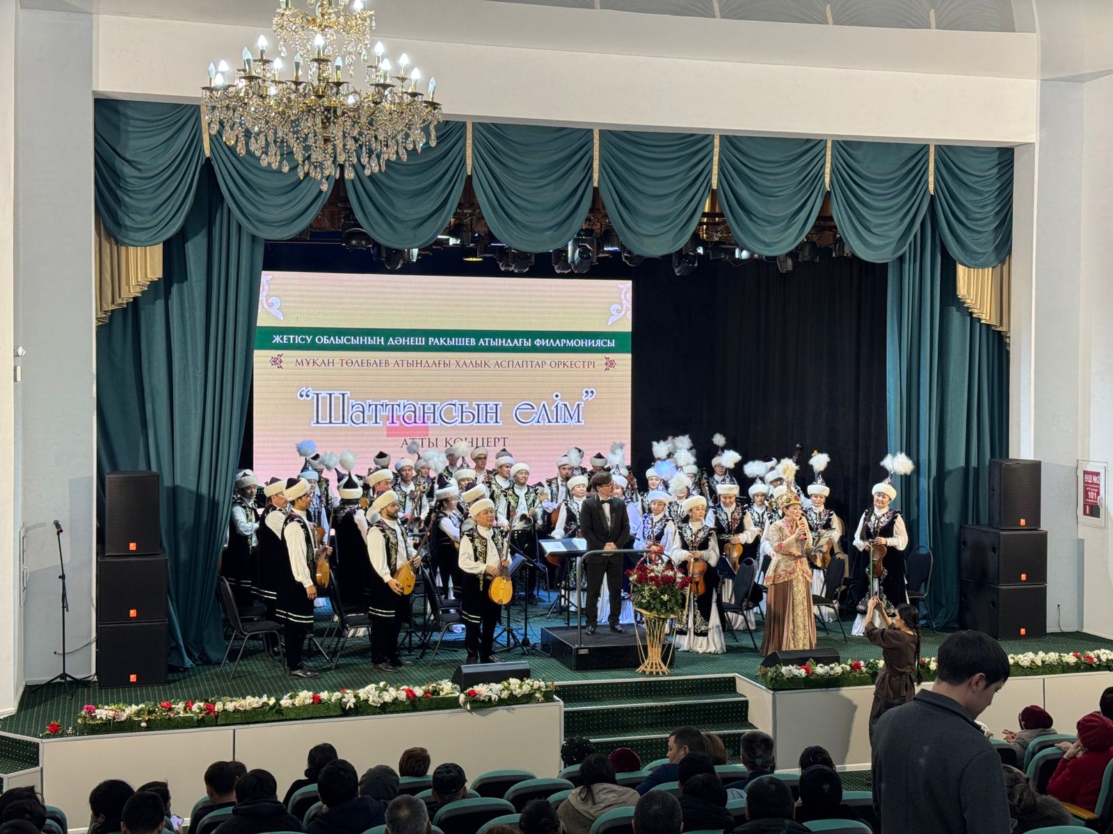 На сцене Коксуйского районного дома культуры прошло значимое событие культурной жизни Жетісу — торжественный концерт «Шаттансын елім» посвящённый 35-летнему юбилею оркестра народных инструментов имени Муканa Толебаева областной филармонии имени Данеша Ракишева.