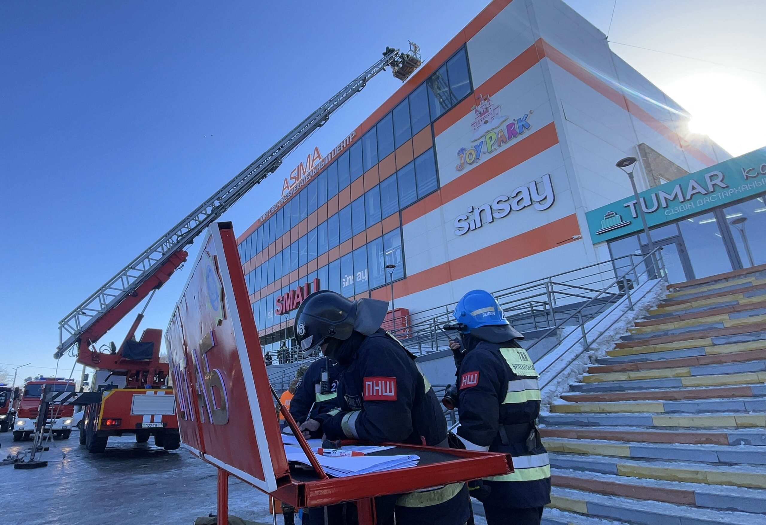 В городе Семей на базе ТРЦ «Асима» состоялись пожарно-тактические учения. По легенде, в здании произошло условное возгорание. Подразделения ДЧС области Абай оперативно прибыли на место и отработали алгоритм действий по спасению и эвакуации людей. В ходе тренировки спасены 7 человек и эвакуированы 20 посетителей торгово-развлекательного центра.