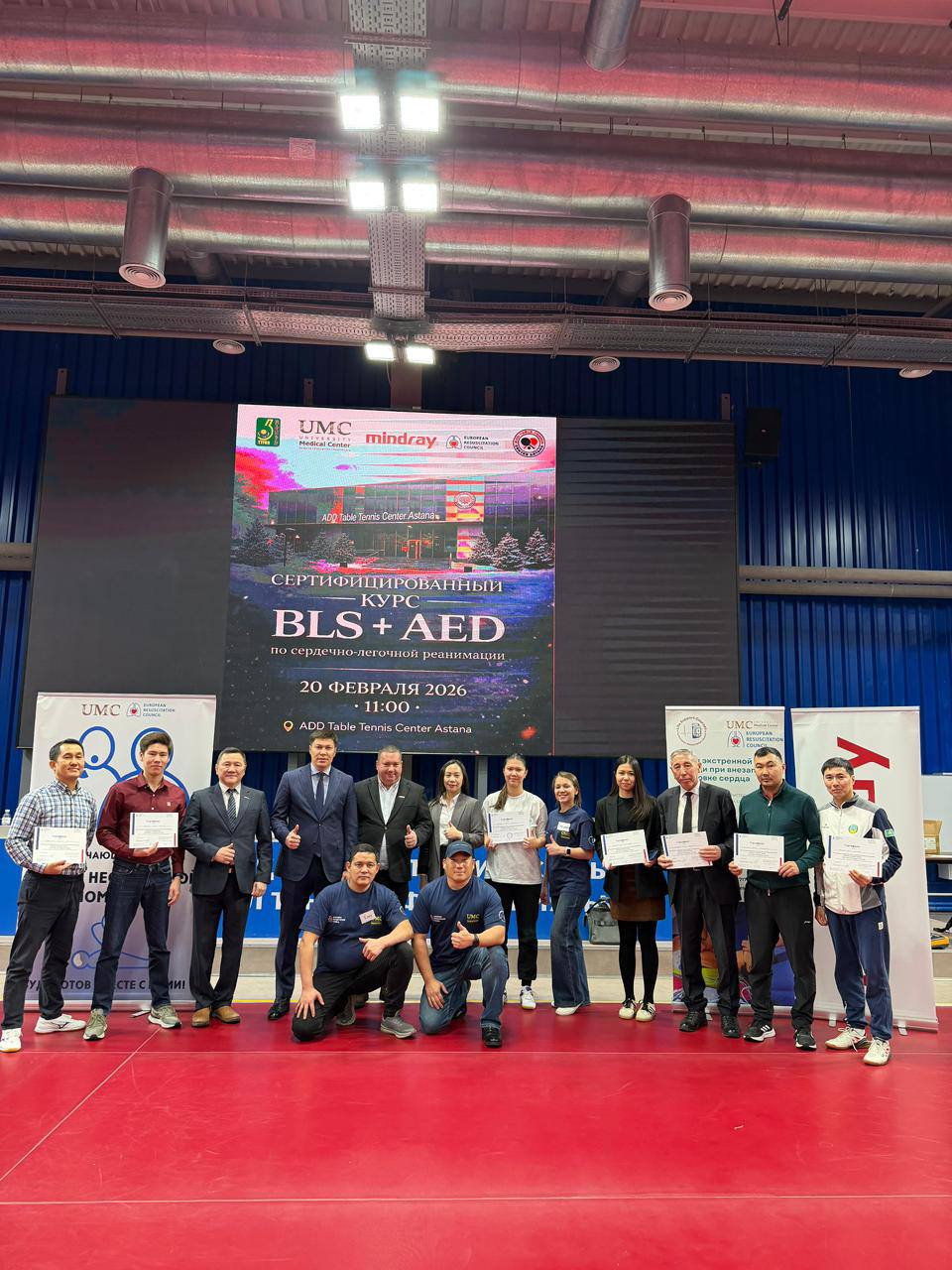20 февраля 2026 года в Астане на базе «ADD Table Tennis Center Astana» впервые среди спортивных федераций прошёл сертифицированный курс по базовой сердечно-лёгочной реанимации (СЛР) с практическим обучением работе с автоматическим наружным дефибриллятором (AED).