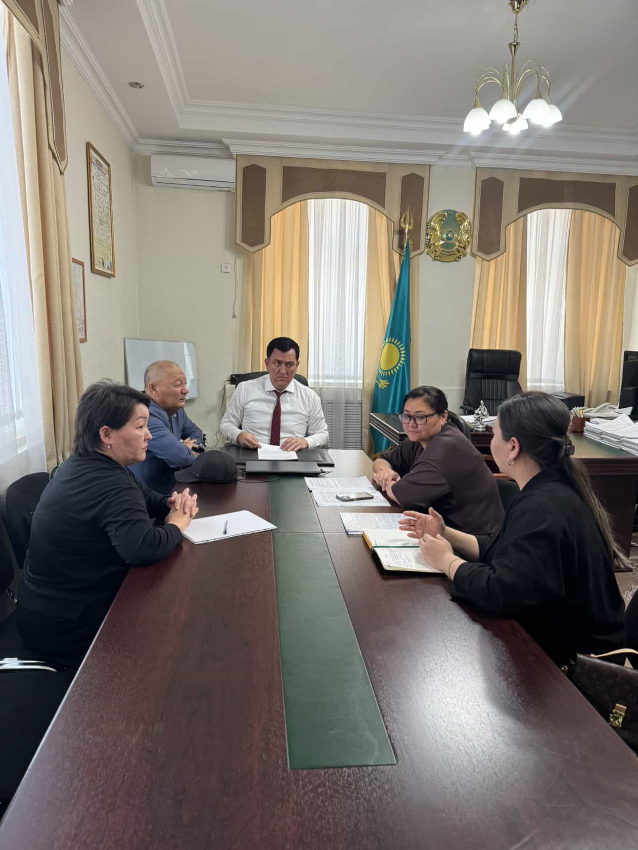 20 февраля текущего года руководитель Департамента юстиции Жамбылской области М. Исабеков, руководитель отдела правового разъяснения и оказания юридической помощи А. Калдыбекова, заместитель председателя Жамбылской областной коллегии адвокатов А. Аманжолова и председатель палаты юридических консультантов Ш. Исабеков провели встречу в связи с увеличением количества постановлений о возврате заявлений, поступивших на получение гарантированной государством юридической помощи.