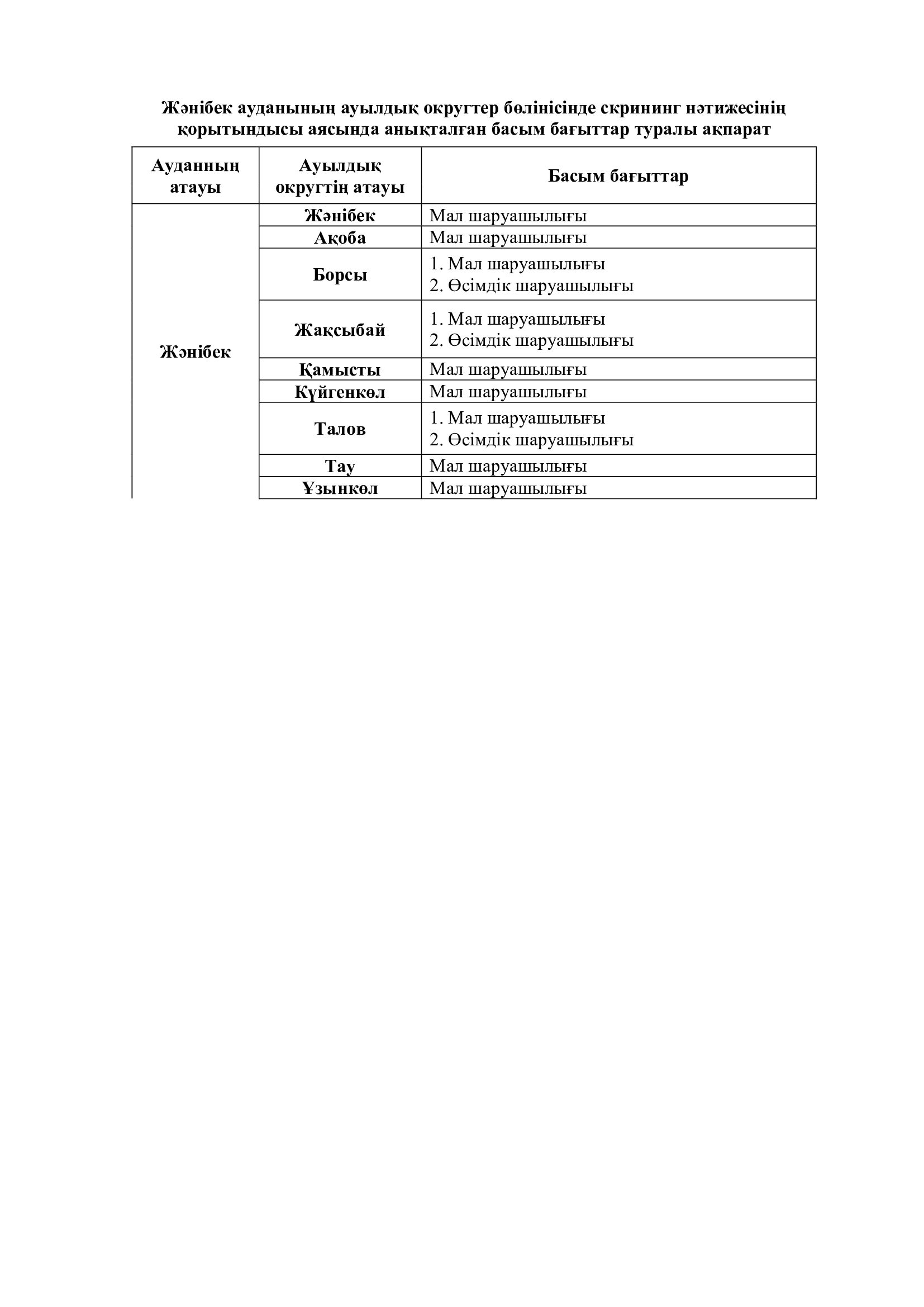 Информация о приоритетных направлениях, выявленных в рамках результатов скрининга в разрезе сельских округов