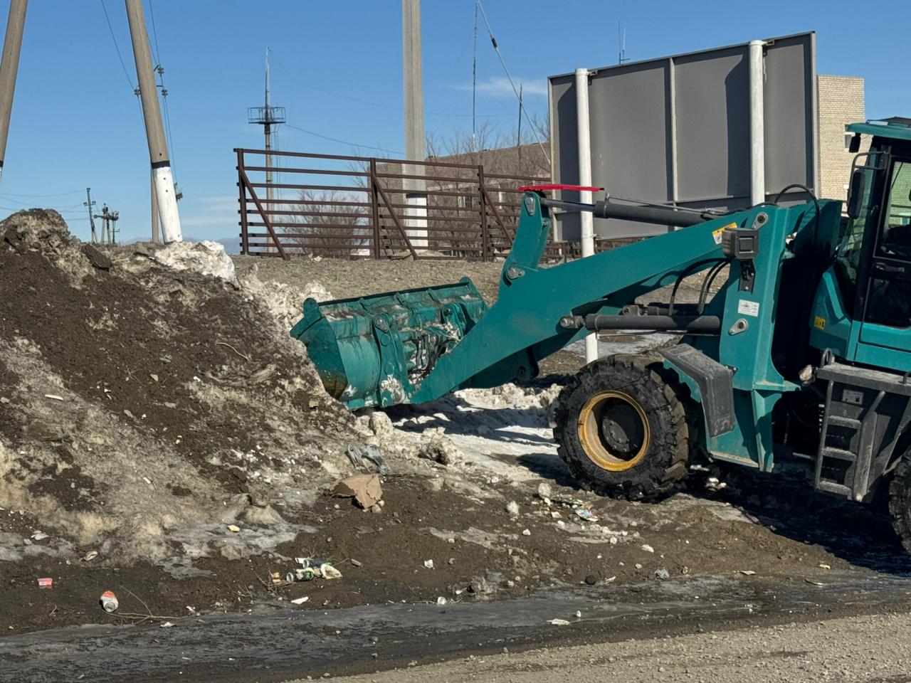 В целях предупреждения весенних паводков проведены работы по вывозу накопленного снега на территории подземного перехода по улице Конаева в селе Достык.
