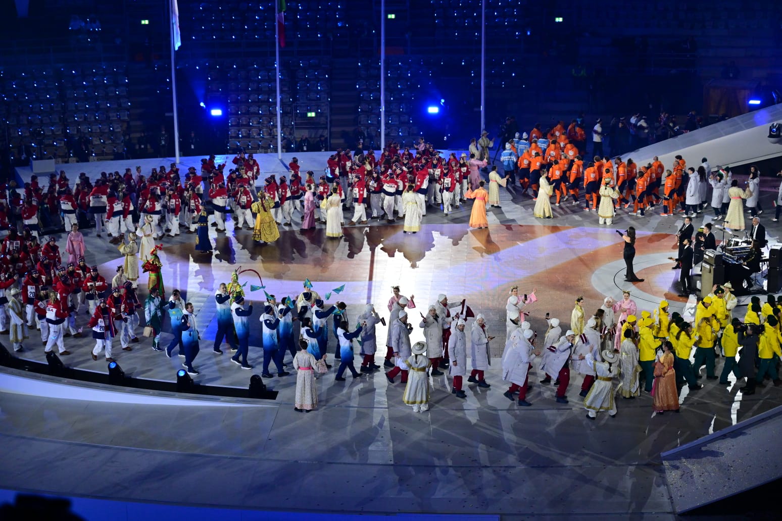 Праздничная программа объединила музыку, искусство и спорт, подчеркнув сплочённость спортсменов и народов разных стран.