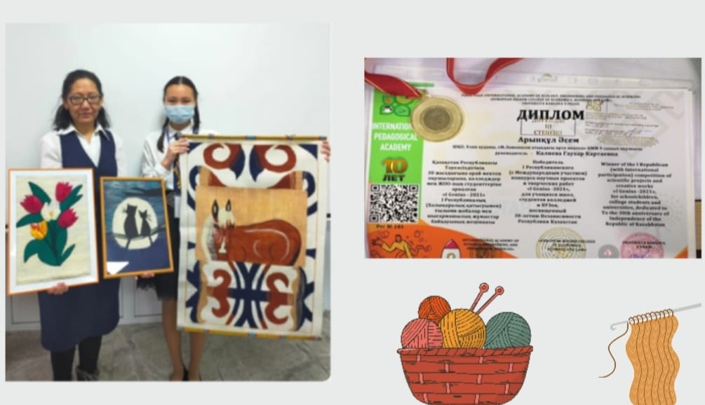 - Калиева Гаухар Картаевна, учитель художественного труда КГУ «Средняя школа имени М. Ломоносова» отдела образования по Уланскому району УО ВКО «Ілмек бізбен тоқу және кілем тоқу өнерін заманауи стильде жаңғырту арқылы шығармашылық тұлғаны қалыптастыру».