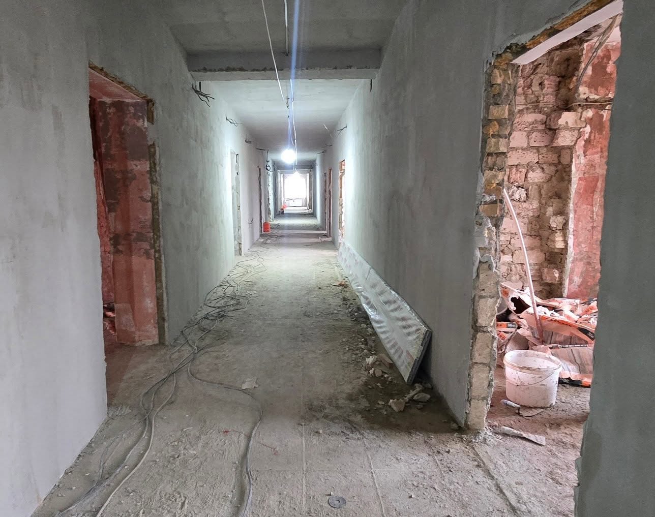 На объекте представитель подрядной организации ТОО «MIR-A Construction» проинформировал о выполняемых работах и отметил, что строительно-монтажные работы осуществляются поэтапно. В настоящее время ведутся работы по обновлению инженерных сетей здания и приведению необходимой инфраструктуры в соответствие с установленными требованиями.