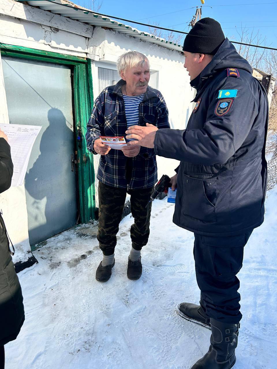 Сотрудники пожарной части № 17 совместно с представителями акимата посетили жителей, разъяснили основные требования пожарной безопасности в отопительный период и напомнили о правилах эксплуатации печного отопления. В ходе встреч были вручены информационные листовки с рекомендациями по безопасному использованию печей и предотвращению чрезвычайных ситуаций.