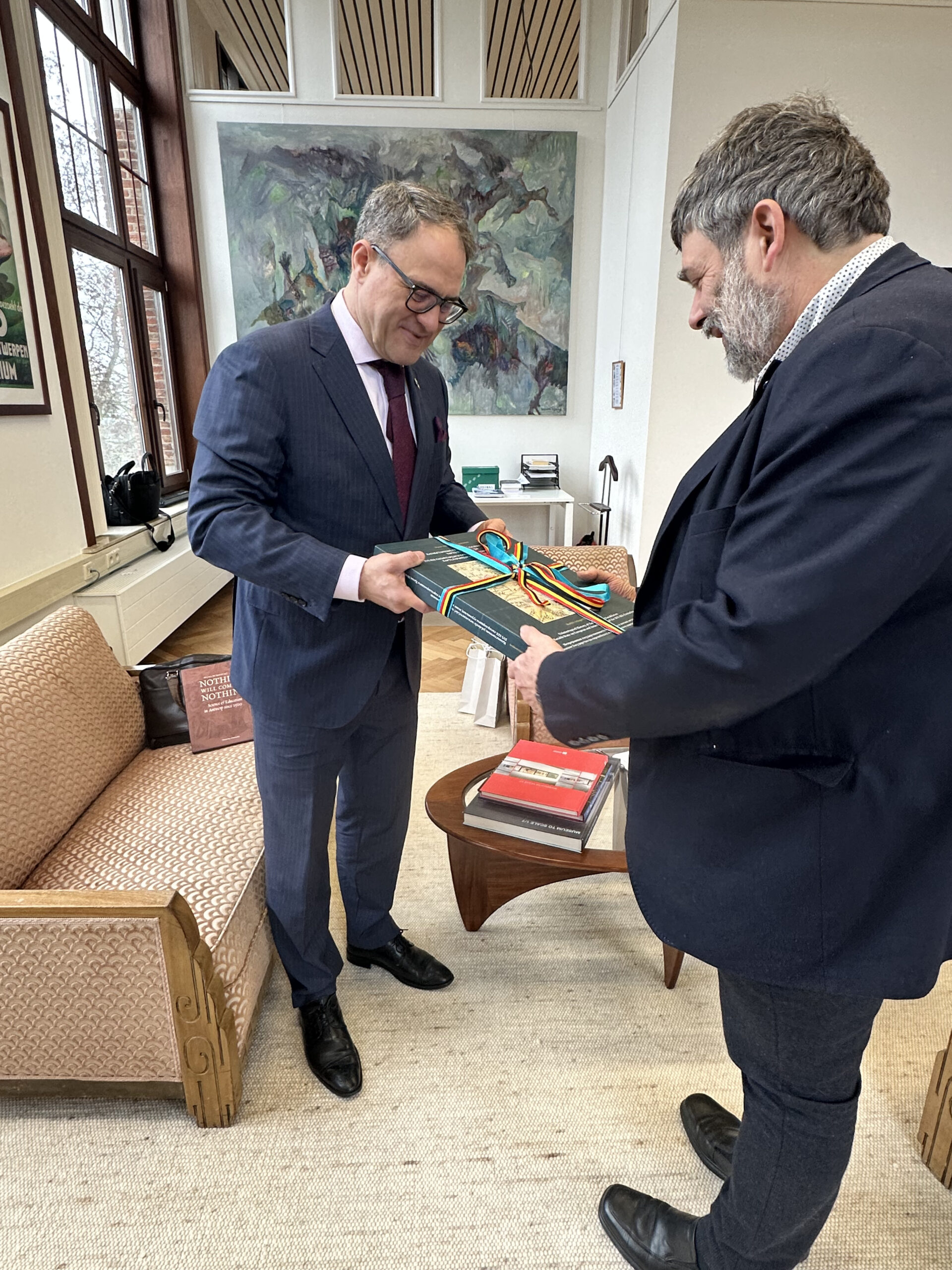 Антверпен, 24 февраля 2026 года – Посол Республики Казахстан в Королевстве Бельгия Роман Василенко провёл встречу с Ректором Университета Антверпена (University of Antwerp — UAntwerp) Хервигом Лейрсом и Вице-ректором Натали Дэнс. Стороны обсудили текущее состояние и перспективы расширения сотрудничества в сфере высшего образования, науки и инноваций.
