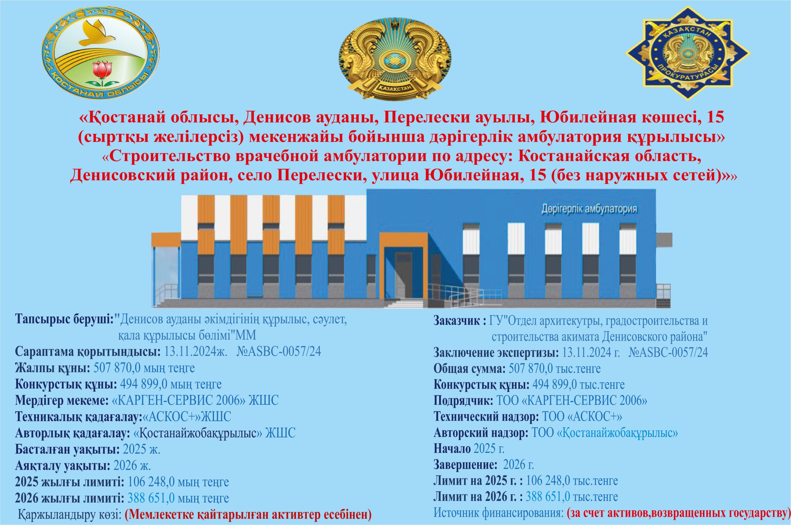 В Денисовском районе продолжается реализация социально значимых проектов за счёт средств, возвращённых государству в рамках работы органов прокуратуры. По инициативе и при координации органов прокуратуры обеспечено направление возвращённых активов на развитие социальной инфраструктуры района. В 2026 году из средств СГФ выделено 455 350,0 тыс. тенге на проведение строительно-монтажных работ по объекту: «Строительство врачебной амбулатории по адресу: Костанайская область, Денисовский район, село Перелески, улица Юбилейная, 15 (без наружных сетей)». Данные средства направлены на развитие системы здравоохранения в Денисовском районе и улучшение качества жизни сельского населения. Для реализации проекта заключён договор с подрядной организацией ТОО «КАРГЕН-СЕРВИС 2006», которая выполнит полный комплекс строительно-монтажных работ (за исключением наружных инженерных сетей). Направление возвращённых активов на строительство медицинских объектов является наглядным примером принципа социальной справедливости и прозрачности использования бюджетных средств. Органы прокуратуры продолжают работу по обеспечению законности, возврату незаконно выведенных активов и их последующему использованию в интересах граждан.