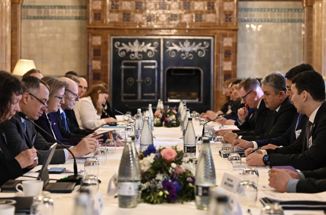 Лондон, 25 февраля 2026 года – В рамках визита в Лондон Министр иностранных дел Республики Казахстан Ермек Кошербаев принял участие на круглом столе с представителями британского бизнес-сообщества. Британскую сторону представляли исполняющий обязанности Министра бизнеса и торговли, сопредседатель британской части Казахстанско-британской межправительственной комиссии по торгово-экономическому, научно-техническому и культурному сотрудничеству Крис Брайант, Председатель Британско-казахского сообществаРуперт Гудман, руководство британских компаний, в том числе «Maritime House», «WeirGroup», «Perry Engineering», «Car Park Transformer», «British Petroleum», «StandardChartered Bank», «UK Export Finance», «London Stock Exchange Group», «Gleeds», «BetterEarth», «Eutelsat OneWeb», а также представители «Coventry University» и «CardiffUniversity».