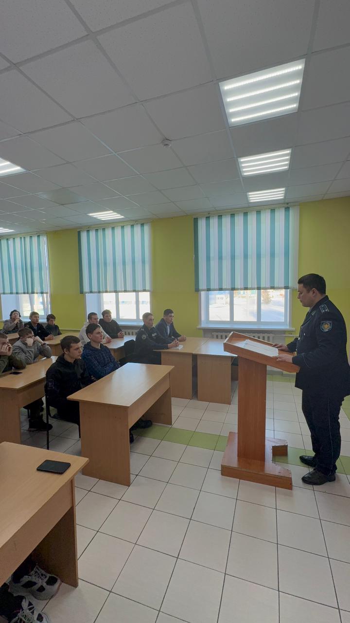Подполковник полиции Руслан Мухамбетжанов, начальник отдела полиции Есильского района ДП СКО, встретился с учащимися Петровского аграрно-технического колледжа и Явленской школы № 1 имени Т. С. Позолотина.