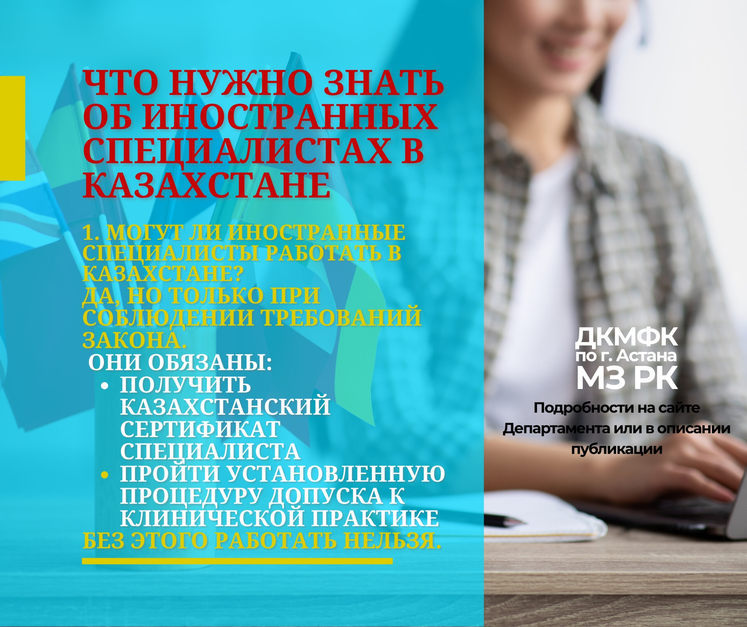 Согласно Кодексу Республики Казахстан «О здоровье народа и системе здравоохранения», иностранные специалисты могут оказывать медицинскую помощь только при наличии соответствующего сертификата специалиста в области здравоохранения Республики Казахстан и при соблюдении установленного порядка допуска к клинической практике.