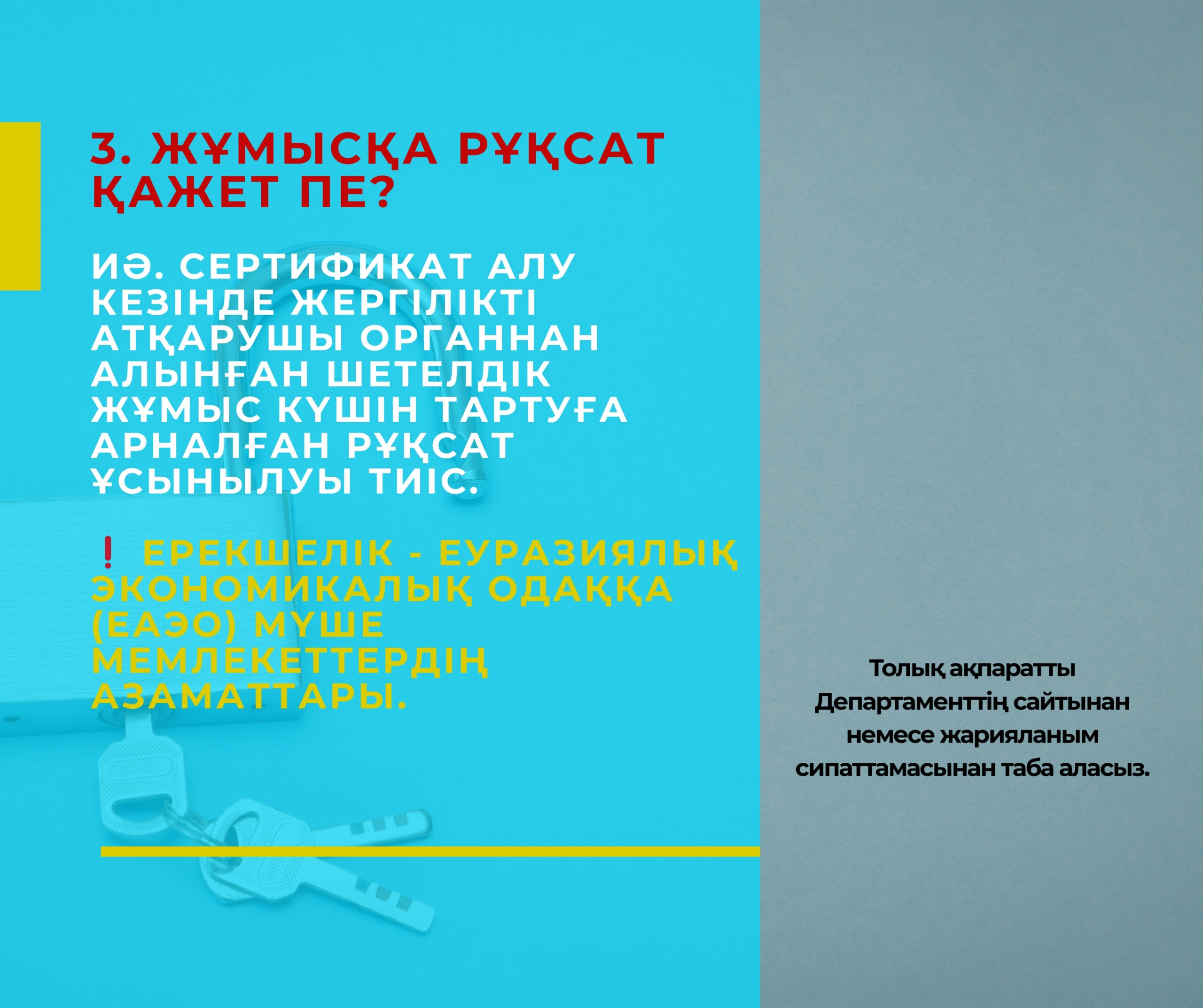 Вместе с тем, иностранные специалисты при сертификации предоставляют разрешение на привлечение иностранной рабочей силы, полученное от МИО, за исключением иностранных специалистов являющихся гражданами государств-участников Договора о Евразийском экономическом союзе от 29 мая 2014 года.
