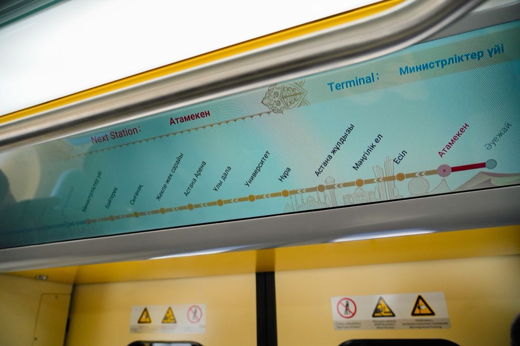 Также в ходе объезда были осмотрены станции «Әуежай», «Бәйтерек», «Дом министерств», «Музей». Тестовая эксплуатация проводится по всей линии в соответствии с утвержденной программой испытаний. Испытания включают проверку инфраструктуры и систем безопасности, а также подготовку персонала и отработку аварийных процедур. Составы адаптированы к климату Центральной Азии и устойчивы к низким температурам и обледенению.