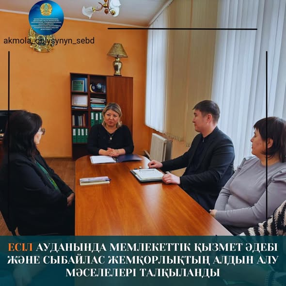 Уполномоченный по этике Департамента санитарно-эпидемиологического контроля Акмолинской области, заместитель руководителя Департамента Сауле Садвакасова провела рабочую встречу с коллективом Есильского районного управления санитарно-эпидемиологического контроля.