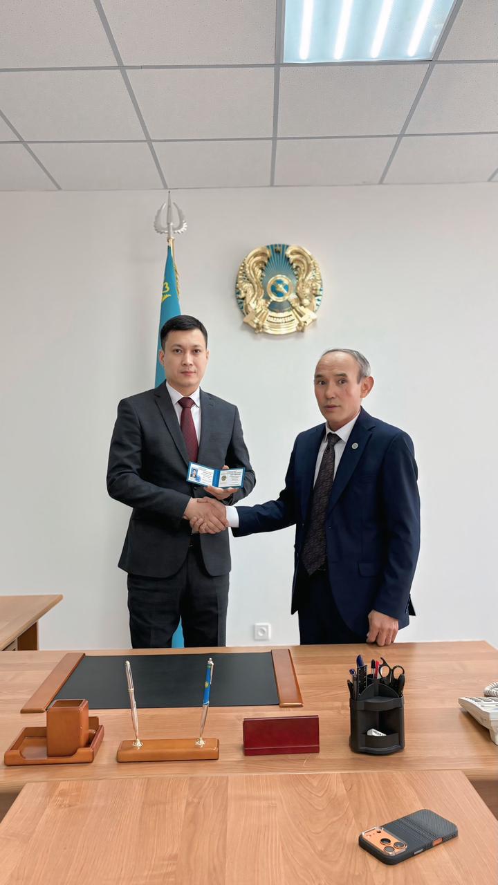 Заместитель председателя территориальной избирательной комиссии Каракиянского района Атагараев Дюсенбай Айткалиевич вручил избранному акиму удостоверение, установленного Центральной избирательной комиссией образца.