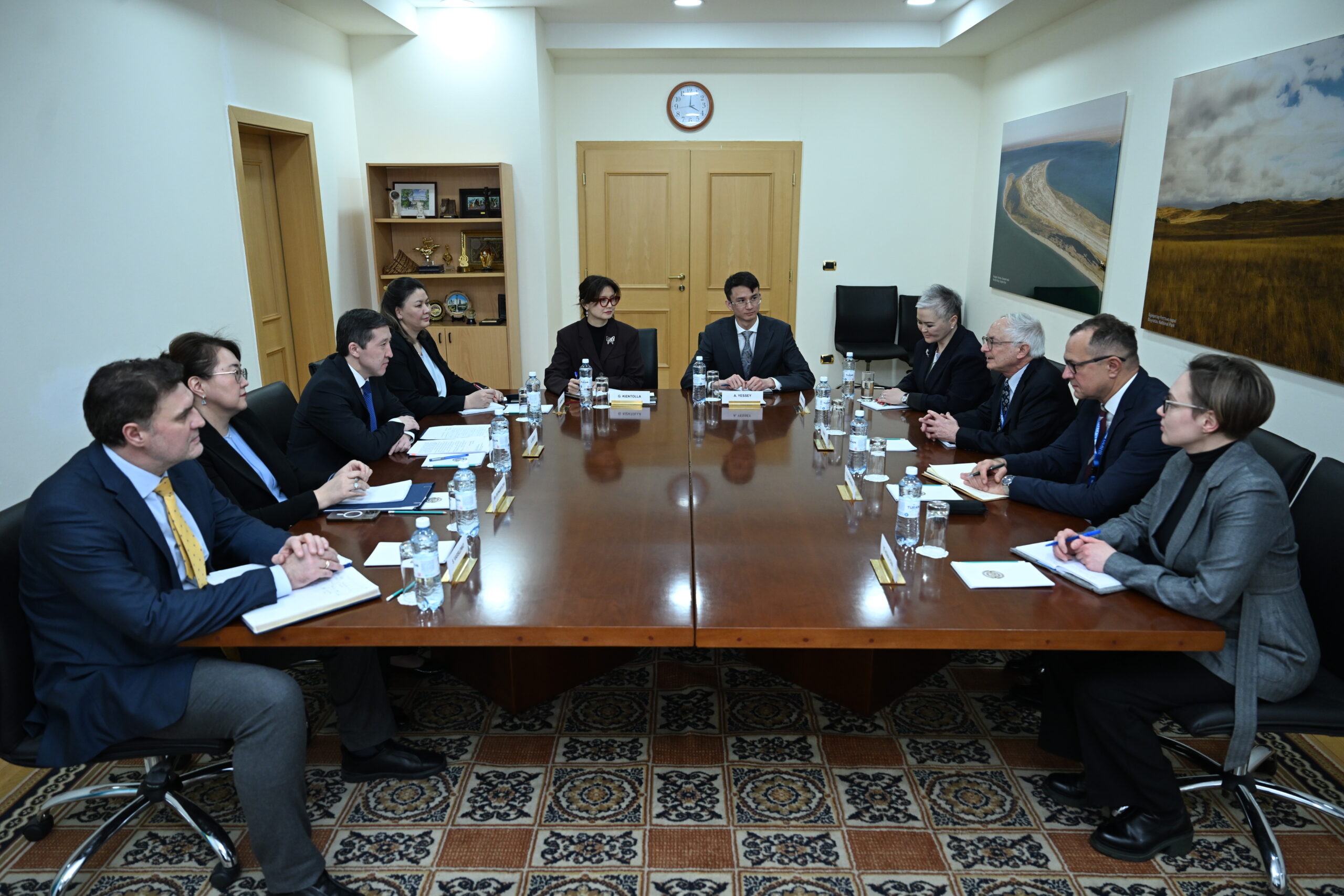 Заместитель министра иностранных дел Республики Казахстан Арман Исетов провёл встречу с делегацией Бюро по демократическим институтам и правам человека ОБСЕ (БДИПЧ) во главе с Дугласом Уэйком, прибывшей в Астану для наблюдения за процессом подготовки и проведения республиканского референдума 15 марта 2026 года.