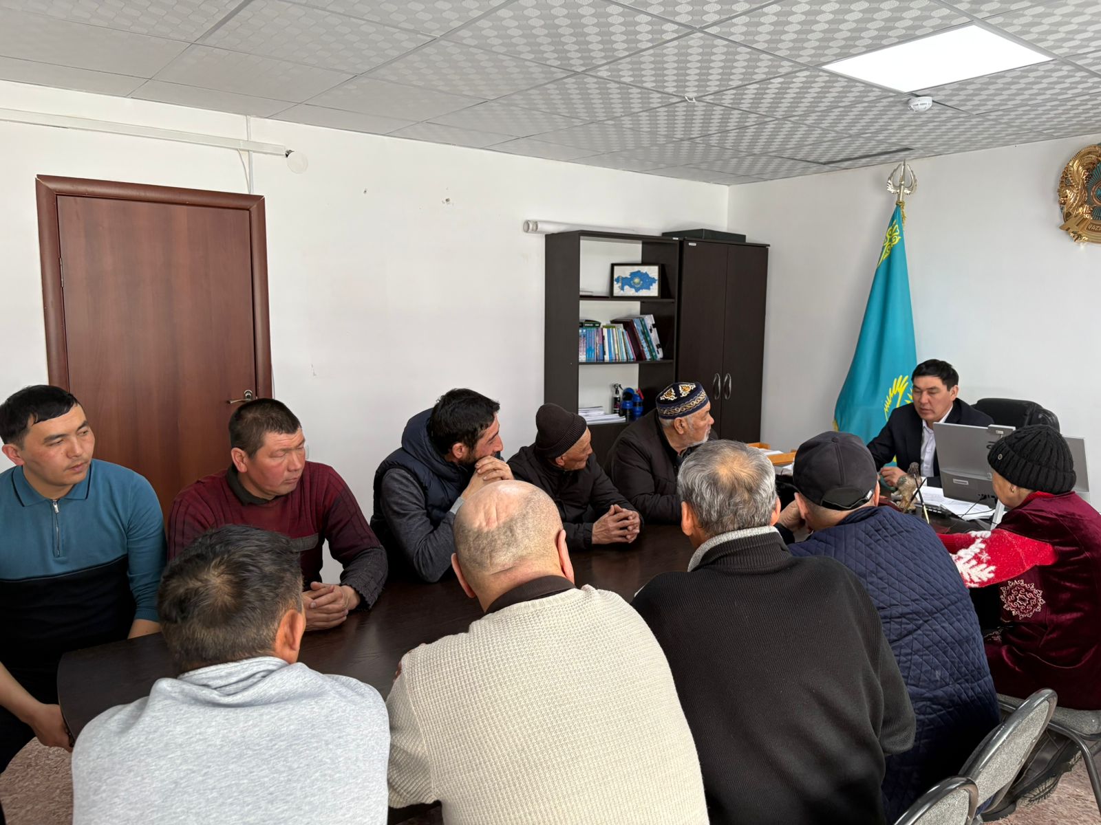В сельском акимате Сарыбулакского сельского округа состоялось совещание с владельцами крестьянских хозяйств, направленное на проведение разъяснительной работы и обсуждение актуальных вопросов в сфере сельского хозяйства. Заседание прошло под председательством акима сельского округа А. Болатов.