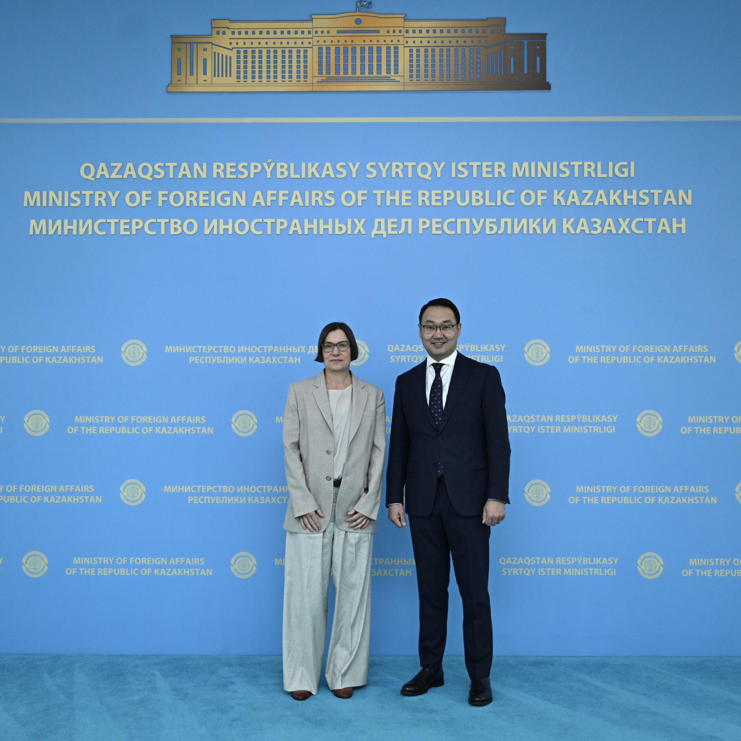 Астана, 6 марта 2026 года – Первый заместитель министра иностранных дел Республики Казахстан Ержан Ашикбаев провёл встречу с Президентом Международного комитета Красного Креста (МККК) Мирьяной Сполярич, впервые посетившей с визитом Казахстан.
