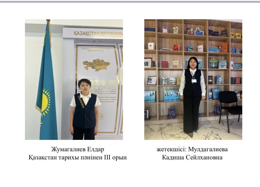 • Қазақстан тарихы пәнінен – Л.Қылышев атындағы ЖОББМ 6-сынып оқушысы Жумагалиев Елдар