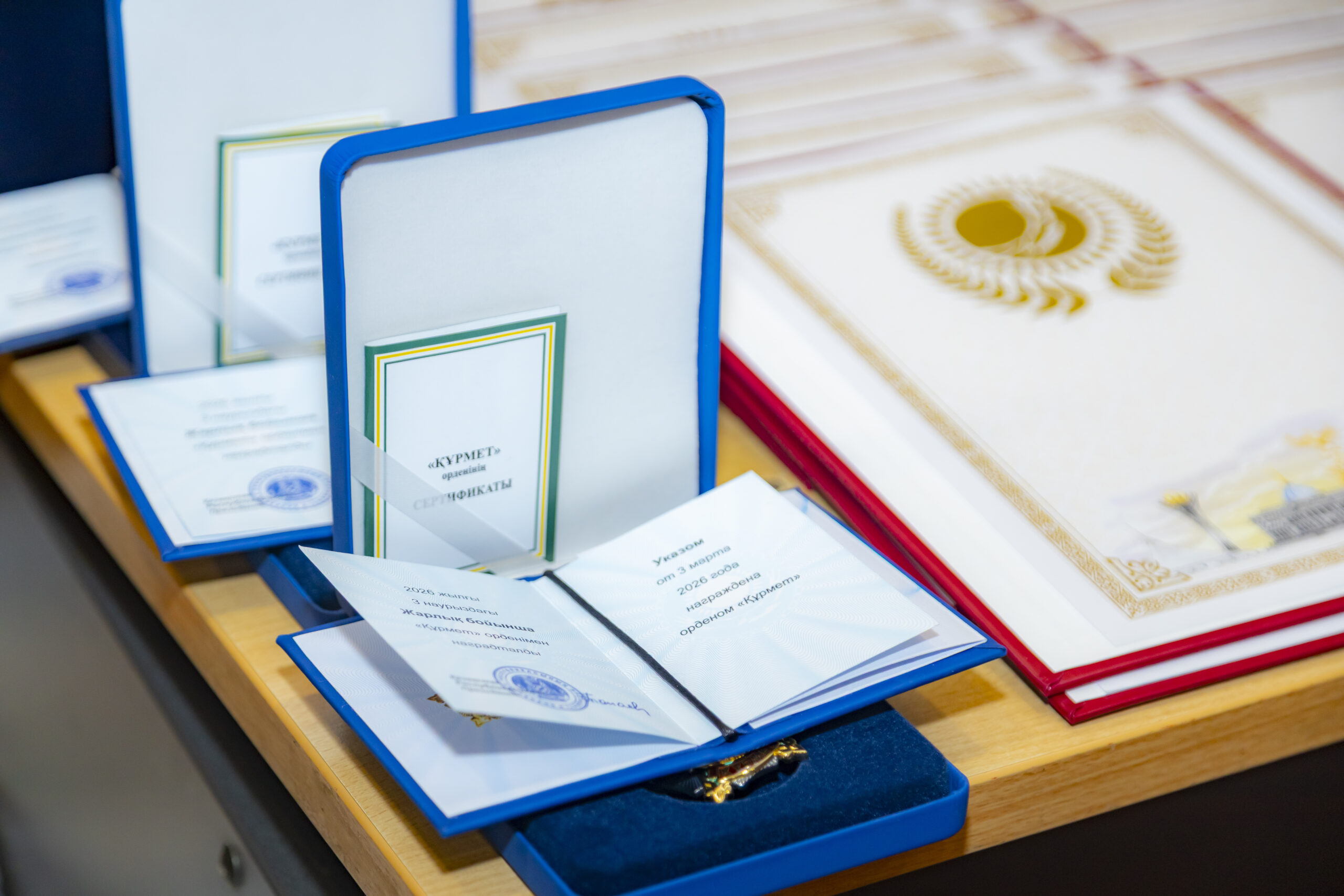 Согласно Указу Главы государства, за добросовестный труд и безупречное исполнение служебных обязанностей делопроизводитель Комитета по защите прав потребителей Лазьм Мияшева и руководитель отдела обучения РГП «Национальный центр аккредитации» Гүлмира Лесбекова были награждены орденом «Құрмет». Медалью «Ерен еңбегі үшін» награждены директор Департамента контроля и документационного обеспечения Қымбат Қойшыбаева, директор Департамента правовой службы Назгүл Сағнайқызы и руководитель Управления законодательной метрологии РГП «Казстандарт» Динара Жұмақаева.