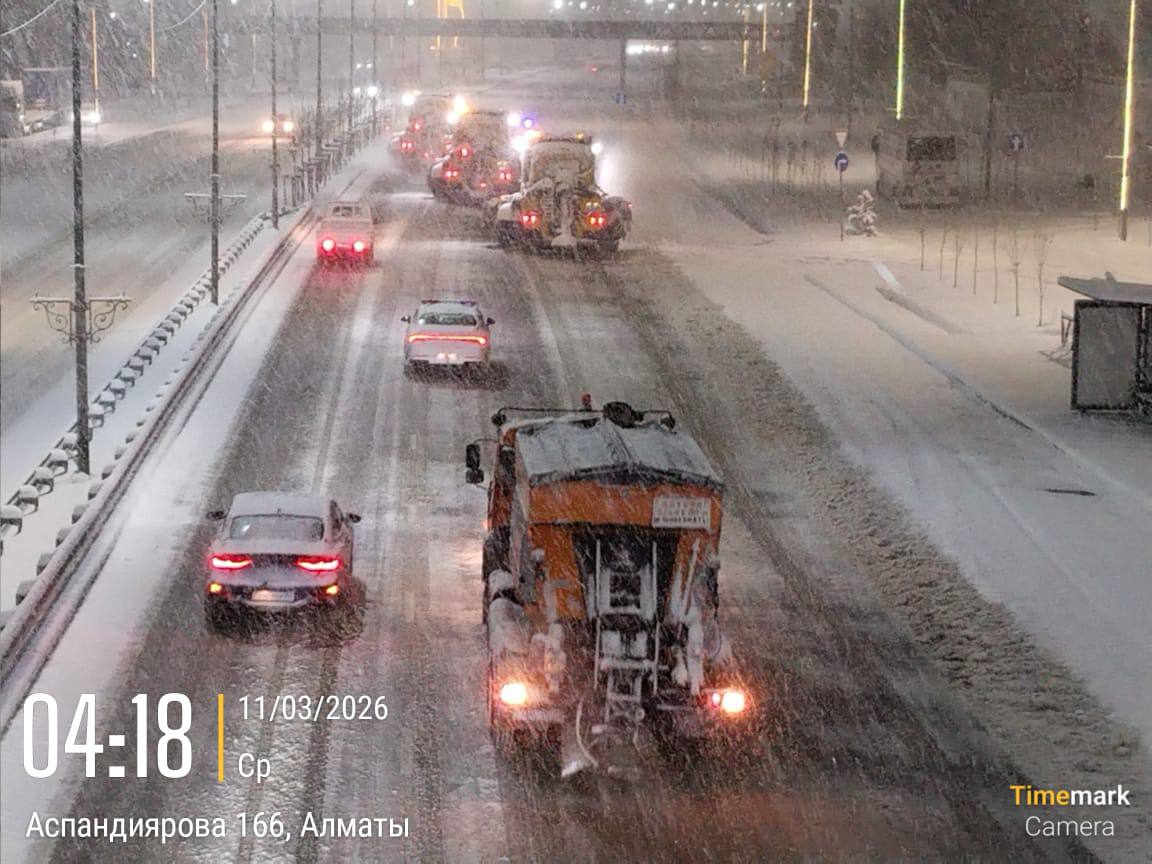 Со вчерашнего дня в Алматы начались осадки в виде снега. С момента выпадения снега коммунальные службы незамедлительно приступили к работам по очистке улично-дорожной сети. В настоящее время работы продолжаются в усиленном режиме. На уборке задействовано 94 единиц специализированной техники и 272 дорожных рабочих.