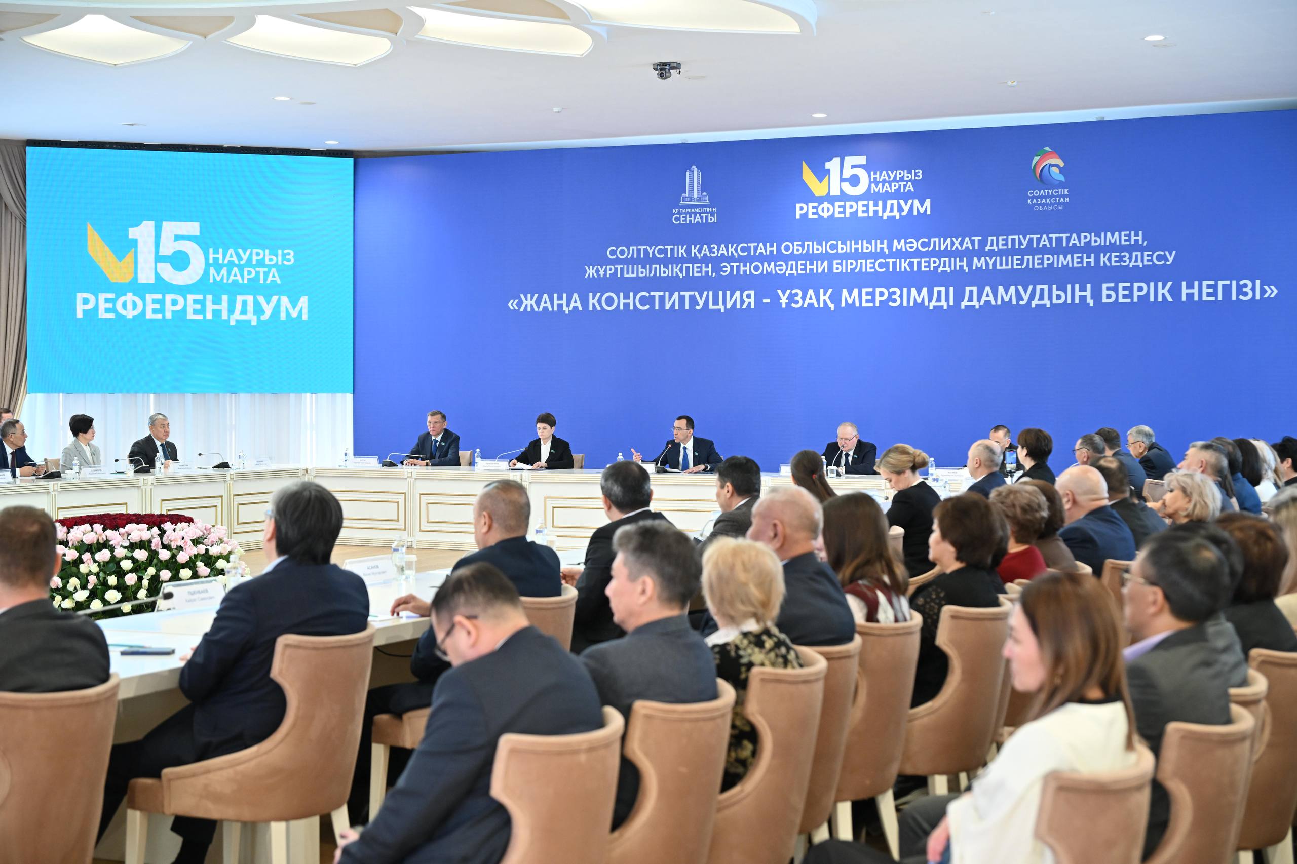 В ходе рабочей поездки в Северо-Казахстанскую область Председатель Сената Республики Казахстан Маулен Ашимбаев встретился с депутатами маслихата, местными жителями, представителями этнокультурных объединений. Все встречи были посвящены теме «Новая Конституция-прочная основа долгосрочного развития».
