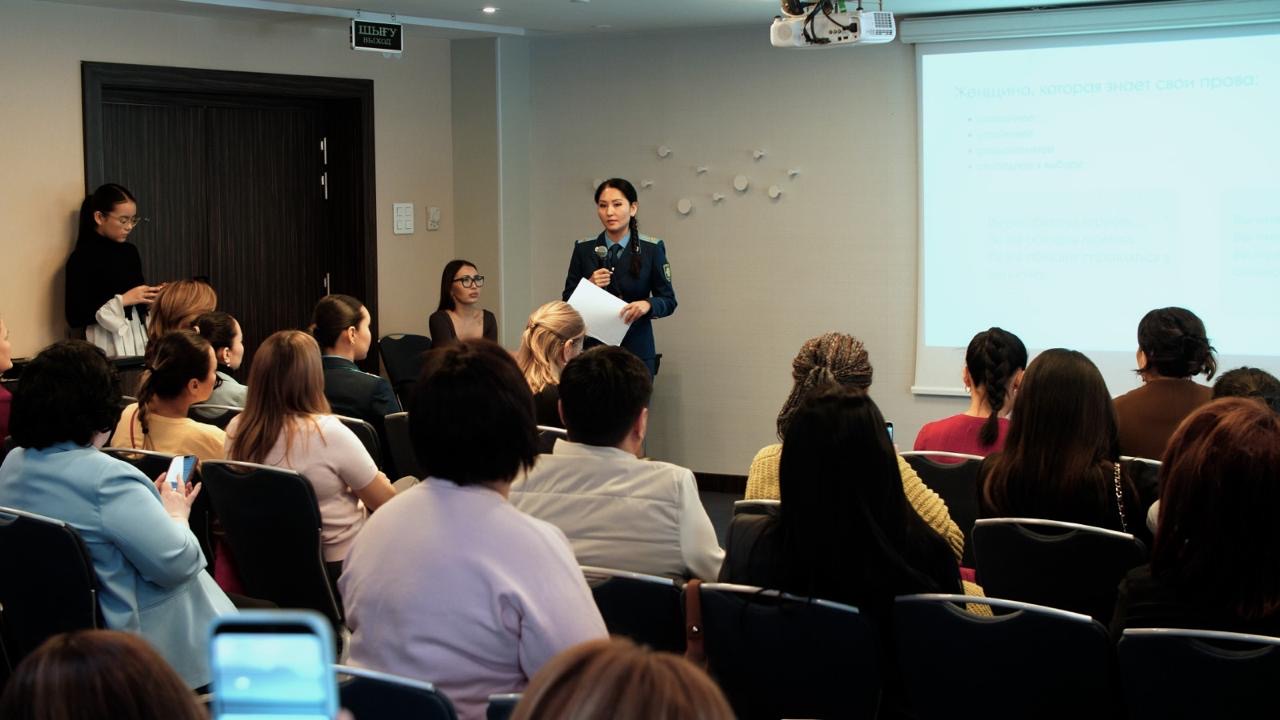 Перед участницами форума выступила начальник Управления прокуратуры города Айжан Аймаганова.