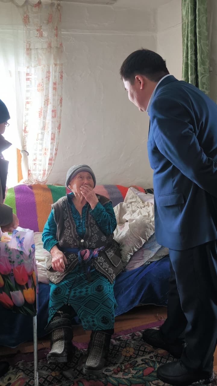 В этот день особое внимание было уделено труженикам тыла. Аким округа навестил уважаемых представительниц старшего поколения, поблагодарил их за самоотверженный труд в годы тяжелых испытаний и пожелал крепкого здоровья, благополучия и долгих лет жизни.