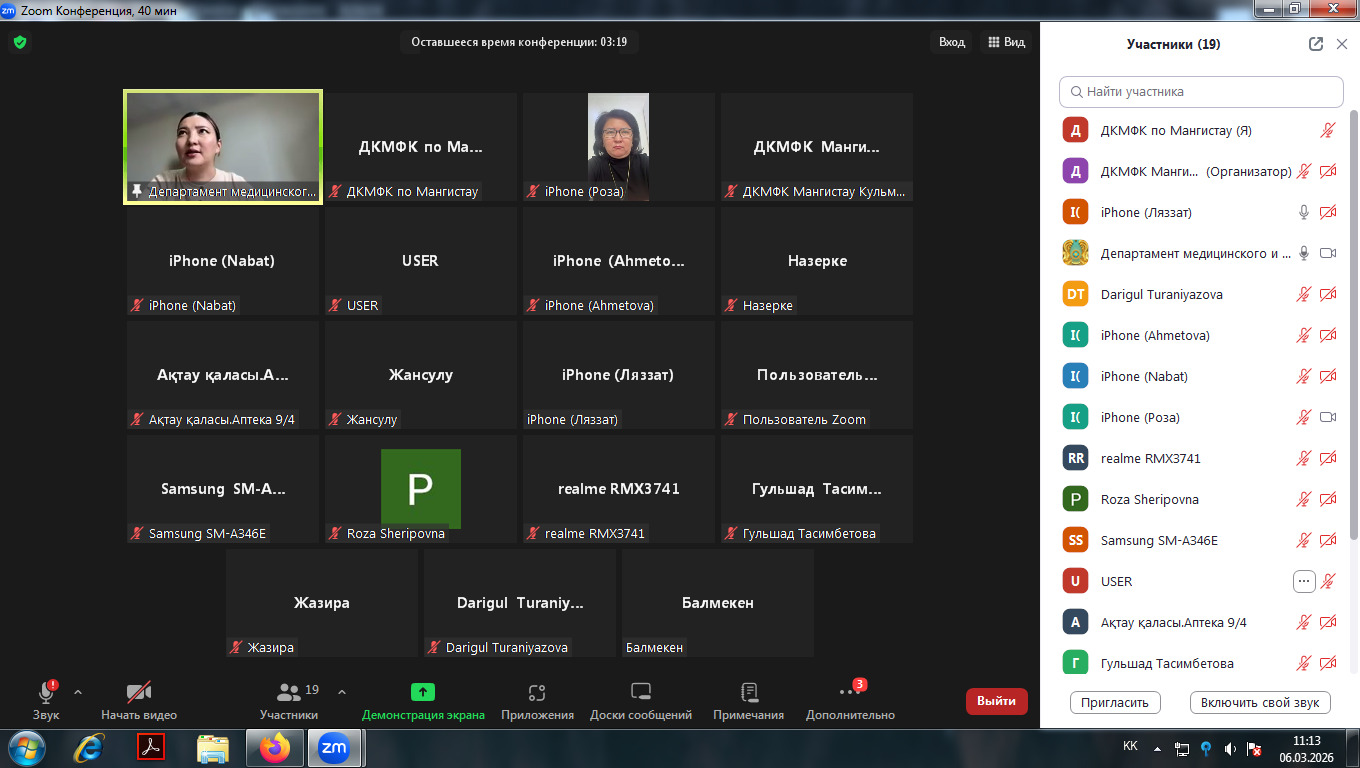Департаментом проведена онлайн-разъяснительная работа через платформу “ZOOM” с участием представителей аптек по вопросам вывода из оборота маркированных лекарственных средств и медицинских изделий