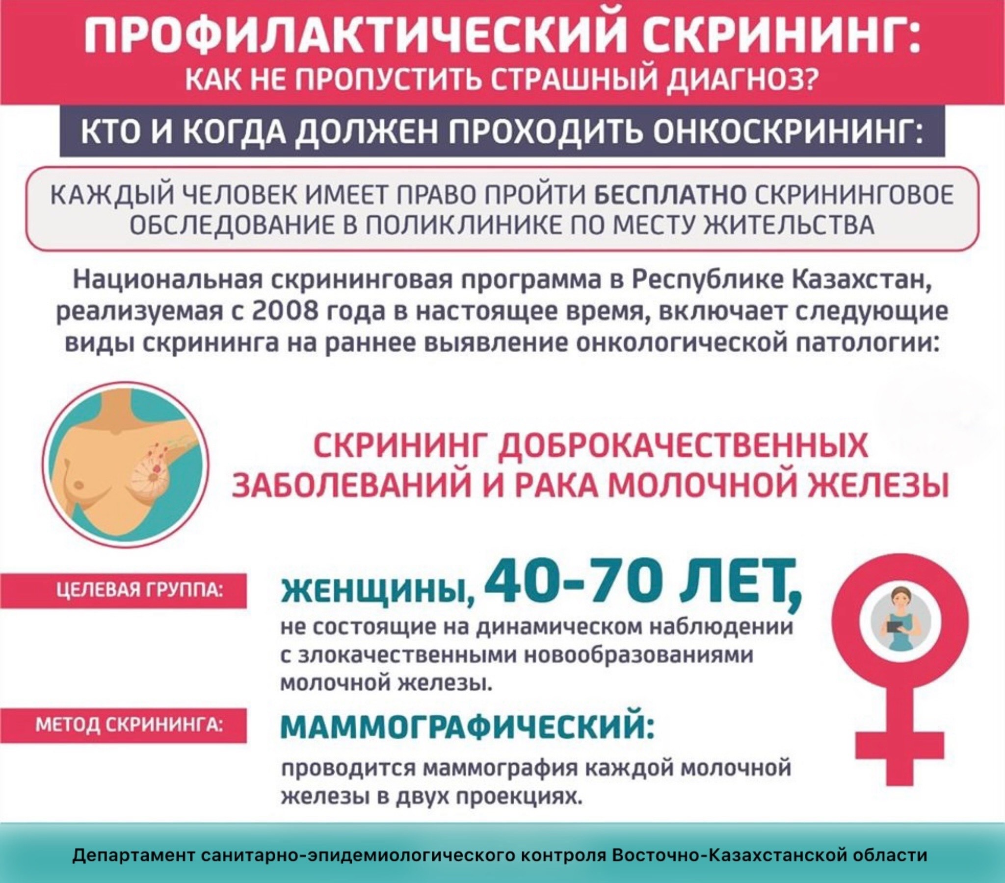 Скрининг рака молочной железы- маммография проводится каждые 2 года.