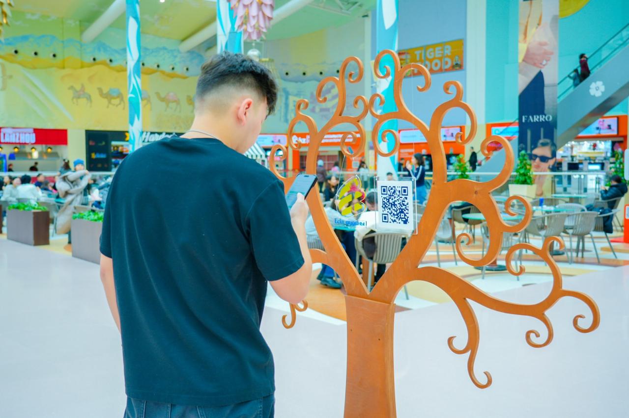На ветвях этого дерева, призванного пропагандировать доброту и милосердие, развешаны QR-коды с пожеланиями детей.
