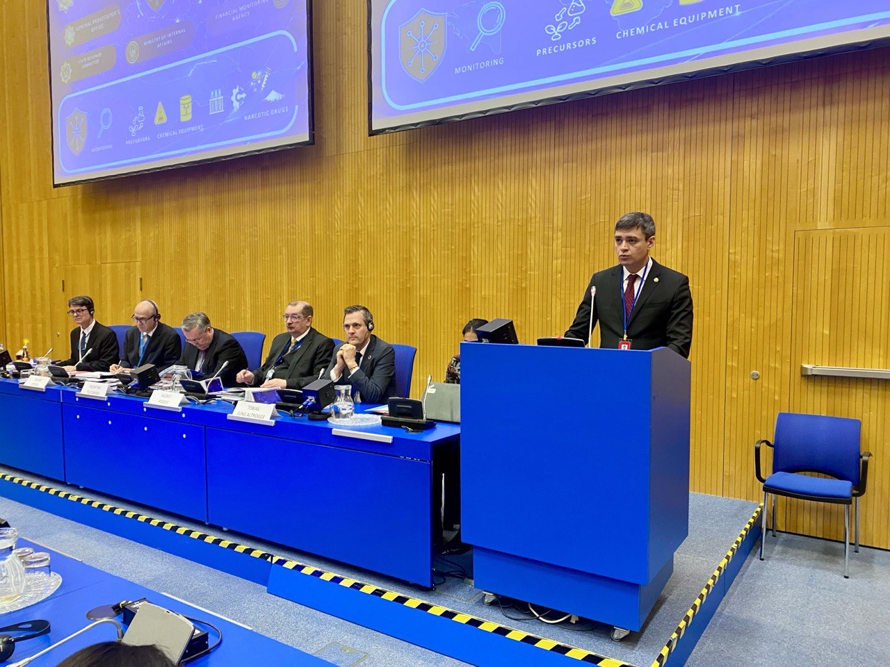 Вена, 11 марта 2026 года – В рамках 69-ой сессии Комиссии ООН по наркотическим средствам делегация Казахстана организовала сайд-ивент на тему «Цифровой щит: роль инновационных технологий в выявлении незаконного оборота наркотиков и отмывания преступных доходов». Соорганизаторами мероприятия выступили Управление ООН по наркотикам и преступности (УНП ООН), Организация по безопасности и сотрудничеству в Европе (ОБСЕ), Программа по предотвращению распространения наркотиков в Центральной Азии (CADAP) и Фонд по интернационализации государственных администраций (FIAP).