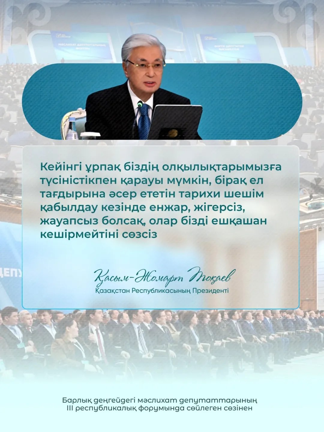 Именно сейчас перед нами стоит задача сделать судьбоносный выбор с зрелым сознанием и высокой ответственностью».