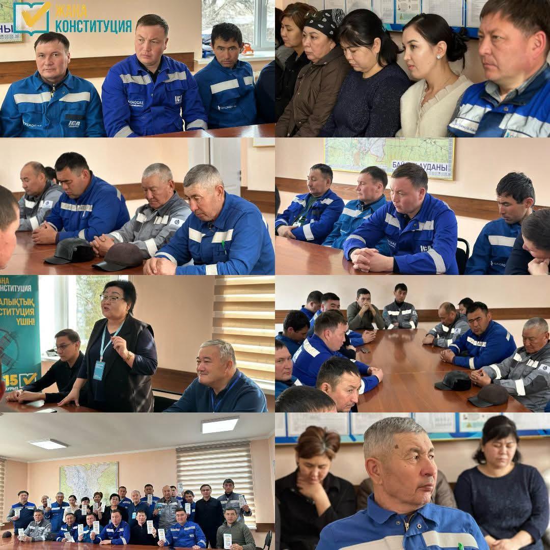 Члены районной общенациональной коалиции провели встречу с коллективом Байзакского газового хозяйства «КазГазАймак». В ходе встречи была разъяснена важность предстоящего референдума, его роль в развитии страны и укреплении стабильности в обществе.